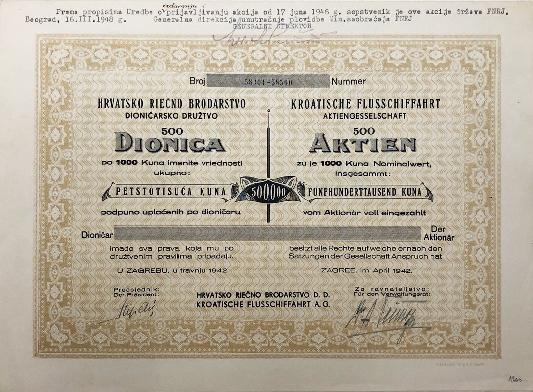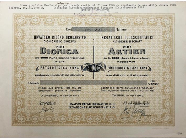 ZAGREB, dionica “HRVATSKO RIEČNO BRODARSTVO” d.d., 500 000 kuna, travanj 1942. 31,5x23 cm Opis: ZAGREB, dionica “HRVATSKO RIEČNO BRODARSTVO” d.d., 500 000 kuna, travanj 1942. 31,5x23 cm ZAGREB, dionica “HRVATSKO RIEČNO BRODARSTVO” d.d., 500 000 kuna, travanj 1942. 31,5x23 cm Aukcija: Aukcija br. 70 - Numizmatika, militarija Kataloški broj: 2147 Kategorija: Dionice - Hrvatska Trenutna ponuđena cijena je 8EUR, ukoliko želite dati svoju ponudu ona mora biti barem 9EUR ili veća. Upišite vrijednost vaše ponude: Ostali predmeti iz kategorije: Dionice - Hrvatska 2127 220 EUR 2128 120 EUR 2129 70 EUR 2130 30 EUR 2131 65 EUR 2132 60 EUR 2133 18 EUR 2134 16 EUR 2135 20 EUR 2136 30 EUR 2137 50 EUR 2138 30 EUR 2139 18 EUR 2140 30 EUR 2141 16 EUR 2142 16 EUR 2143 10 EUR 2144 25 EUR 2145 10 EUR 2146 65 EUR 12→