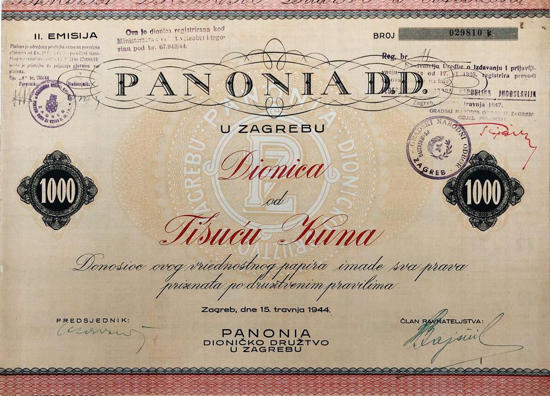 ZAGREB, dionica “PANONIA” d.d., 1 000 kuna, 15. travanj 1944. 31,5x23 cm Opis: ZAGREB, dionica “PANONIA” d.d., 1 000 kuna, 15. travanj 1944. 31,5x23 cm ZAGREB, dionica “PANONIA” d.d., 1 000 kuna, 15. travanj 1944. 31,5x23 cm Aukcija: Aukcija br. 70 - Numizmatika, militarija Kataloški broj: 2148 Kategorija: Dionice - Hrvatska Trenutna ponuđena cijena je 7EUR, ukoliko želite dati svoju ponudu ona mora biti barem 7EUR ili veća. Upišite vrijednost vaše ponude: Ostali predmeti iz kategorije: Dionice - Hrvatska 2127 220 EUR 2128 120 EUR 2129 70 EUR 2130 30 EUR 2131 65 EUR 2132 60 EUR 2133 18 EUR 2134 16 EUR 2135 20 EUR 2136 30 EUR 2137 50 EUR 2138 30 EUR 2139 18 EUR 2140 30 EUR 2141 16 EUR 2142 16 EUR 2143 10 EUR 2144 25 EUR 2145 10 EUR 2146 65 EUR 12→
