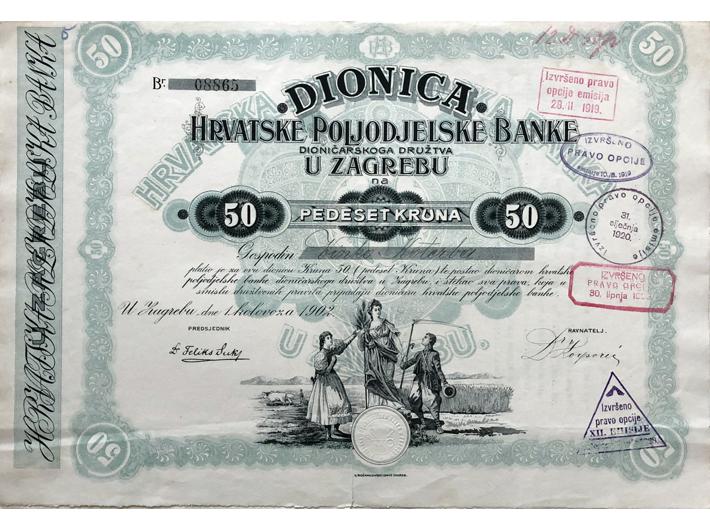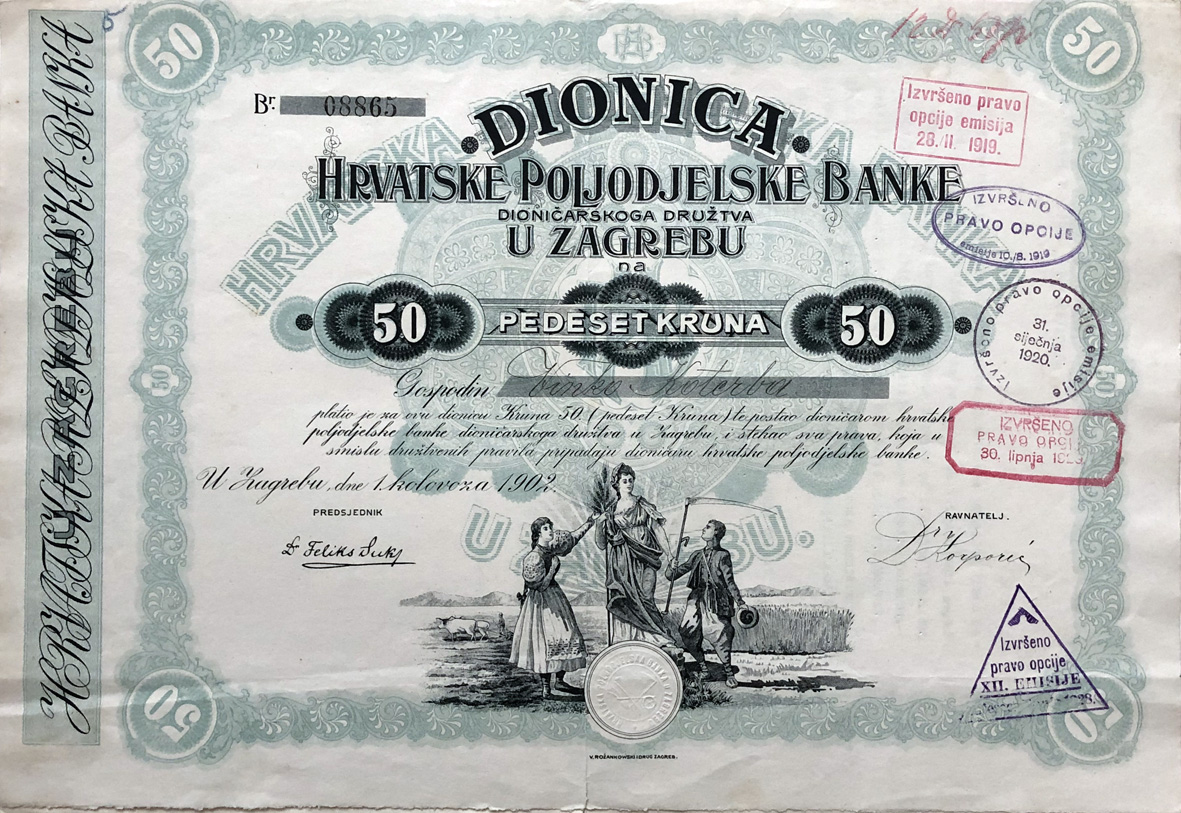ZAGREB, dionica "Hrvatska poljodjelska banka" d.d., 50 kruna, 1.8.1902., 36x25 cm Opis: ZAGREB, dionica "Hrvatska poljodjelska banka" d.d., 50 kruna, 1.8.1902., 36x25 cm ZAGREB, dionica "Hrvatska poljodjelska banka" d.d., 50 kruna, 1.8.1902., 36x25 cm Aukcija: Aukcija br. 64 - Numizmatika, militarija Kataloški broj: 339 Kategorija: Dionice - Hrvatska Trenutna ponuđena cijena je 30EUR, ukoliko želite dati svoju ponudu ona mora biti barem 30EUR ili veća. Upišite vrijednost vaše ponude: Ostali predmeti iz kategorije: Dionice - Hrvatska 335 80 EUR 336 40 EUR 337 35 EUR 338 15 EUR 339 30 EUR 340 20 EUR 341 30 EUR 342 100 EUR 343 60 EUR 344 10 EUR 345 8 EUR 346 18 EUR 347 20 EUR 348 12 EUR 349 30 EUR 350 10 EUR 351 15 EUR 352 22 EUR 353 15 EUR 354 8 EUR 12→
