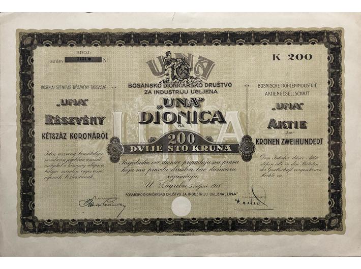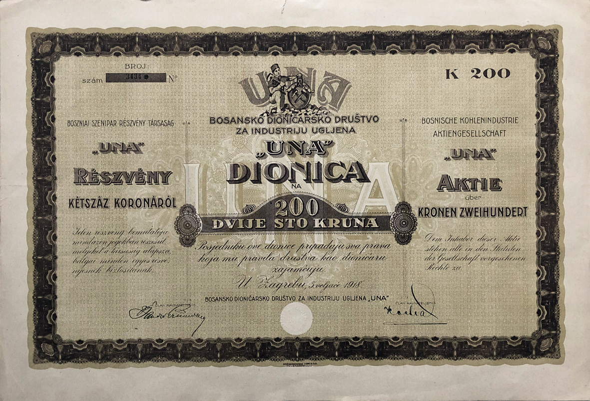 ZAGREB, dionica "UNA" Bosansko d.d. za industriju ugljena, 200 kruna, 5. veljače 1918., 29x43 cm Opis: ZAGREB, dionica "UNA" Bosansko d.d. za industriju ugljena, 200 kruna, 5. veljače 1918., 29x43 cm ZAGREB, dionica "UNA" Bosansko d.d. za industriju ugljena, 200 kruna, 5. veljače 1918., 29x43 cm Aukcija: Aukcija br. 64 - Numizmatika, militarija Kataloški broj: 347 Kategorija: Dionice - Hrvatska Trenutna ponuđena cijena je 20EUR, ukoliko želite dati svoju ponudu ona mora biti barem 25EUR ili veća. Upišite vrijednost vaše ponude: Ostali predmeti iz kategorije: Dionice - Hrvatska 335 80 EUR 336 40 EUR 337 35 EUR 338 15 EUR 339 30 EUR 340 20 EUR 341 30 EUR 342 100 EUR 343 60 EUR 344 10 EUR 345 8 EUR 346 18 EUR 347 20 EUR 348 12 EUR 349 30 EUR 350 10 EUR 351 15 EUR 352 22 EUR 353 15 EUR 354 8 EUR 12→