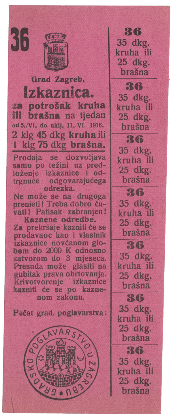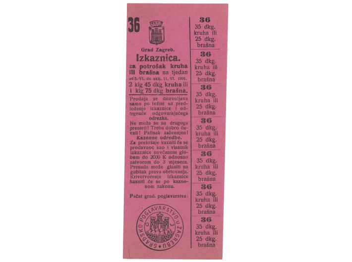 • ZAGREB, Iskaznica za kruh i brašno, 1916