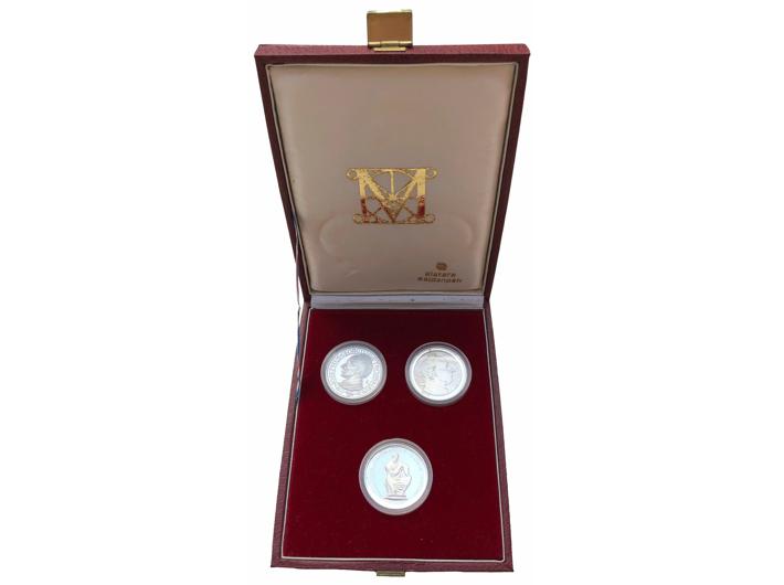 Opis: ZAGREB, Štrosmajerova galerija 1984, 3 medalje u kompletu, svaka 12,86 g = 38,58 g, u originalnoj kutiji, Zlatara Majdanpek, PP