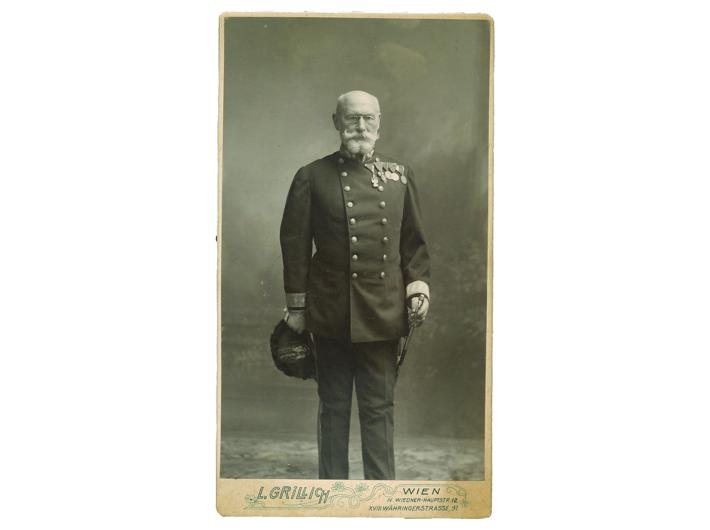 ŽELJEZNIČKI OFICIR, fotografija na kartonu. Wien, oko 1900. Opis: ŽELJEZNIČKI OFICIR, fotografija na kartonu. Wien, oko 1900. Austrougarski oficir, nosi više ordena (Željezna kruna, orden Franje Josipa, itd.). Kabinet fotografija, 11,5x20 cm. ŽELJEZNIČKI OFICIR, fotografija na kartonu. Wien, oko 1900. Aukcija: Aukcija br. 67 - Numizmatika, militarija Kataloški broj: 479 Kategorija: Fotografije i promičba Trenutna ponuđena cijena je 14EUR, ukoliko želite dati svoju ponudu ona mora biti barem 16EUR ili veća. Upišite vrijednost vaše ponude: Ostali predmeti iz kategorije: Fotografije i promičba 474 30 EUR 475 40 EUR 476 30 EUR 477 8 EUR 478 16 EUR 479 14 EUR 480 55 EUR 481 16 EUR 482 15 EUR 483 30 EUR 484 4 EUR 485 200 EUR 486 80 EUR 487 180 EUR 488 25 EUR 489 45 EUR 490 45 EUR 491 65 EUR 492 170 EUR 493 220 EUR 123→