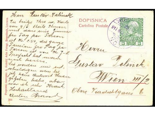 Auction 48 - Philately and postcards Ships ✉ 1050 - Letter sent from Kotor by ship to Dubrovnik. Cancel CATTARO COL VAPORE 20 EUR ✉ 1051 - Letter sent from Trieste via Zadar by ship to Dubrovnik 45 EUR ✉ 1052 - Letter with complete content, sent from Trieste via Zadar 20 EUR ✉ 1053 - Letter with complete content sent from Constantinople to Orebić 28.06. 1880 20 EUR ✉ 1054 - Letter with complete content, sent from Trieste to Bordeaux 27.02. 1872. 20 EUR ✉ 1055 - Letter with complete content sent from Trieste to Falmouth, Great Britain 45 EUR ✉ 1056 - Two letters from the correspondence, of captain Miailović with cancel LETTERE DI VAPORE. 30 EUR ✉ 1057 - Lot of four letters from the correspondence of captain Miailović. 75 EUR ✉ 1058 - Lithograph of ship's company that hold lines in Dalmatia 30 EUR ✉ 1059 - Postcard with image of steamship Panonija 25 EUR ✉ 1060 - Postcard Rab sent by boat NOVI 60 EUR ✉ 1061 - Letter sent by ship LIBURNIA 60 EUR 1234→