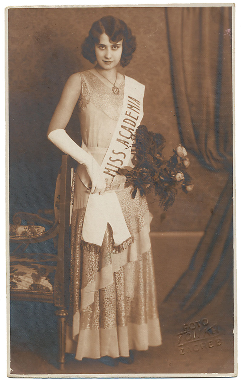 MISS ACADEMIA, fotografija. Atelier FOTO TONKA. Zagreb, oko 1930. Description: MISS ACADEMIA, fotografija. Atelier FOTO TONKA. Zagreb, oko 1930. 8x13 cm. MISS ACADEMIA, fotografija. Atelier FOTO TONKA. Zagreb, oko 1930. Auction: Aukcija br. 56 - Knjige, zemljovidi, plakati Catalog No: 822 Category: Posters, advertisements, photos Current offer is at 20EUR. In order to place your bid your offer needs to be at least 20EUR or higher. Please place your bid: Other items from the category: Posters, advertisements, photos 785 1800 EUR 786 2000 EUR 787 1000 EUR 788 2800 EUR 789 50 EUR 790 40 EUR 791 40 EUR 792 40 EUR 793 70 EUR 794 110 EUR 795 30 EUR 796 25 EUR 797 30 EUR 798 20 EUR 799 40 EUR 800 30 EUR 801 30 EUR 802 40 EUR 803 75 EUR 804 30 EUR 123→