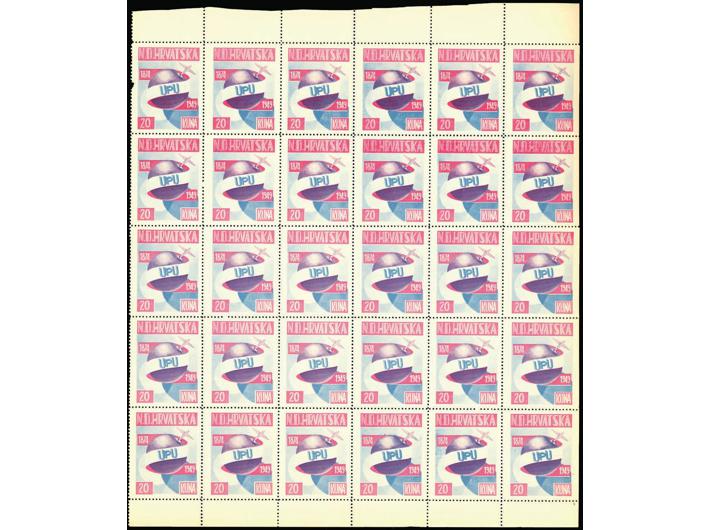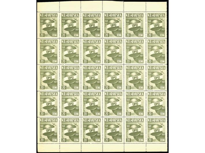 NDH edition in emigration for the occasion of anniversary of UPU Description: NDH edition in emigration for the occasion of anniversary of UPU 1949, in four color. In total 120 stamps. NDH edition in emigration for the occasion of anniversary of UPU Auction: Aukcija br. 48 - Filatelija i razglednice Catalog No: 542 Category: Independent State of Croatia Current offer is at 55EUR. In order to place your bid your offer needs to be at least 55EUR or higher. Please place your bid: Other items from the category: Independent State of Croatia ** 289 45 EUR (*) 290 30 EUR ** 291 20 EUR ** 292 20 EUR ✉ 293 25 EUR ✉ 294 40 EUR ** 295 150 EUR ☉ 296 220 EUR **/* 297 110 EUR ** 298 45 EUR ** 299 40 EUR ** 300 80 EUR ** 301 50 EUR ☉ 302 150 EUR **/* 303 130 EUR ** 304 40 EUR ☉ 305 120 EUR ✉ 306 25 EUR ✉ 307 50 EUR ✉ 308 60 EUR 123456789→
