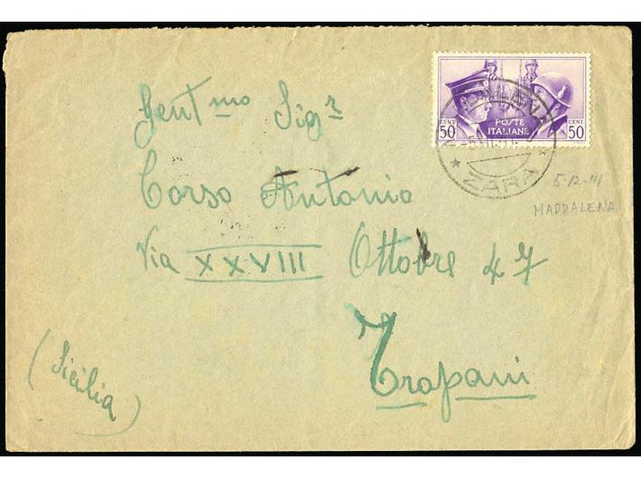 Letter sent from MADDALENA (Madalina) to Sicily 05.12. 1941. Description: Letter sent from MADDALENA (Madalina) to Sicily 05.12. 1941. Good quality. Letter sent from MADDALENA (Madalina) to Sicily 05.12. 1941. Auction: Aukcija br. 48 - Filatelija i razglednice Catalog No: 528 Category: Independent State of Croatia Quality: ✉ Current offer is at 20EUR. In order to place your bid your offer needs to be at least 20EUR or higher. Please place your bid: Other items from the category: Independent State of Croatia ** 289 45 EUR (*) 290 30 EUR ** 291 20 EUR ** 292 20 EUR ✉ 293 25 EUR ✉ 294 40 EUR ** 295 150 EUR ☉ 296 220 EUR **/* 297 110 EUR ** 298 45 EUR ** 299 40 EUR ** 300 80 EUR ** 301 50 EUR ☉ 302 150 EUR **/* 303 130 EUR ** 304 40 EUR ☉ 305 120 EUR ✉ 306 25 EUR ✉ 307 50 EUR ✉ 308 60 EUR 123456789→