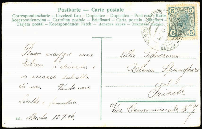 Postcard sent from Vipavskog Križa to Trieste 12.09. 1906 Description: Postcard sent from Vipavskog Križa to Trieste 12.09. 1906. Rare cancel, good quality. Postcard sent from Vipavskog Križa to Trieste 12.09. 1906 Auction: Aukcija br. 48 - Filatelija i razglednice Catalog No: 748 Category: Slovenia Quality: ✉ Current offer is at 35EUR. In order to place your bid your offer needs to be at least 40EUR or higher. Please place your bid: Other items from the category: Slovenia ✉ 674 130 EUR ✉ 675 260 EUR ✉ 676 18 EUR ✉ 677 400 EUR ✉ 678 340 EUR ✉ 679 160 EUR ✉ 680 25 EUR ✉ 681 20 EUR (*) 682 100 EUR * 683 45 EUR ** 684 16 EUR ** 685 20 EUR ☉ 686 45 EUR ☉ 687 16 EUR **/* 688 45 EUR **/* 689 30 EUR * 690 16 EUR ☉ 691 14 EUR ** 692 30 EUR ▲ 693 20 EUR 1234→