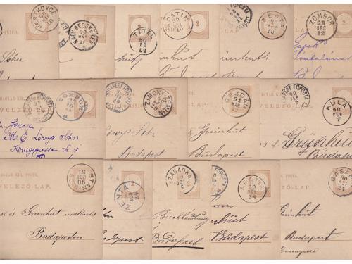 Aukcija br. 74 - Filatelija i razglednice ✉ 1285 - Slovenija, mala zbirka na temu verigari. 20 EUR ✉ 1286 - Zbirka mađarskih dopisnica (15 kom) s lijepim žigovima mjesta u Vojvodini. 30 EUR ✉ 1287 - Mali lot pisama i isječaka, sve područje Hrvatske 30 EUR ✉ 1288 - Hrvatska, lot pisama i dvije marke s lijepim žigovima. 40 EUR 1289 - Mali ali vrlo zanimljiv lot ex jugoslavenskog područja. 95 EUR ✉ 1290 - Dobar lot provizornih dopisnica i drugih poštanskih dokumenata iz 1918/19. 60 EUR ✉ 1291 - NDH lot 34 pisma, FDC-a prigodnih karata. 90 EUR ✉ 1292 - NDH lot 21 pismo ili dopisnica. 80 EUR ✉ 1293 - NDH dobar lot FDC-a i promiđbenih karata, razna kvaliteta. 320 EUR ✉ 1294 - NDH lot 16 vrlo zanimljivih pisama. 85 EUR 1295 - Talijanska okupacija Hrvatske, lot 7 dopisnica dobre kvalitete. 35 EUR ✉ 1296 - NDH lot 18 pisama, cjelina, paketnih karata (zaračunato u gotovom), frankirana novinska pasica itd. 70 EUR ←103104105106107108109110111→