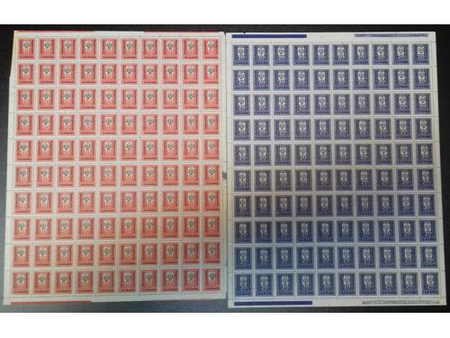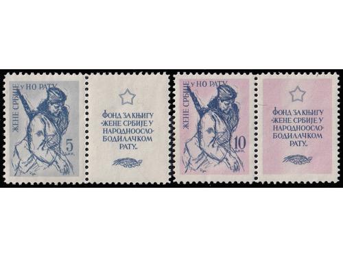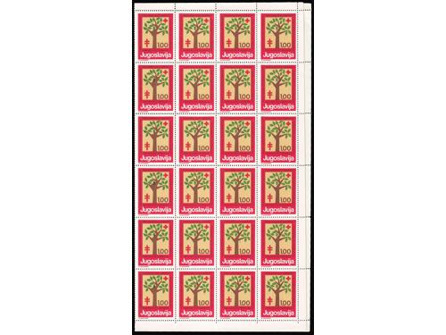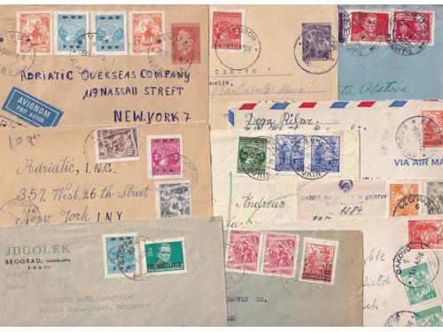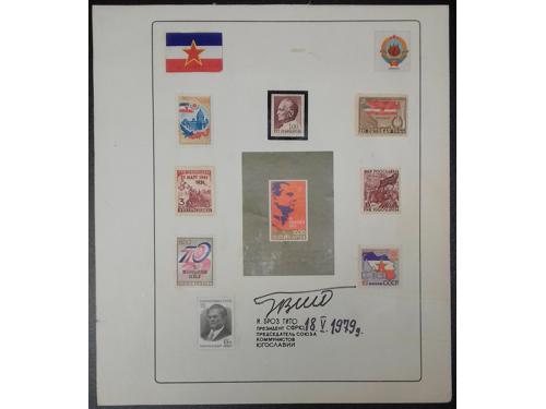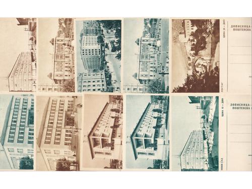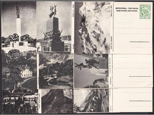 Aukcija br. 74 - Filatelija i razglednice ✉ 1153 - Dopisnica Michel br. P 130 s dotiskom amblema II kongresa sindikalnih službenika. 10 EUR ✉ 1154 - Dvije slikovne dopisnice tema JNA i jedna neputovala sa slikom Mostara. 16 EUR ✉ 1155 - Devet raznih slikovnih dopisnica iz niza Voćarstvo u odličnoj kvaliteti. 35 EUR ✉ 1156 - Lot 10 raznih slikovnih dopisnica iz niza Voćarstvo, sve u dobroj kvaliteti. 30 EUR ✈ 1157 - Lot 10 pisama i cjelina uglavnom upućenih preporučeno i zrakoplovom u SAD između 1947 i 1995 godine. 30 EUR ** 1158 - Dvije vinjete od 5 i 10 din. s privjescima „Fond za knjigu Žene Srbije u Narodonooslobodilačkom ratu“. 18 EUR ** 1159 - Michel br. 57 doplatni arak 1 din s pogreškom tiska 5. okomitog reda “debelo drvo” 45 EUR ** 1160 - Michel br. Porto 74/75 kompletni arci u odličnoj kvaliteti. 30 EUR ** 1161 - Michel br. Porto 76/83 kompletni arci u odličnoj kvaliteti. 220 EUR ** 1162 - Michel br. Porto 84/88 kompletni arci u odličnoj kvaliteti. 440 EUR 1163 - Albumski list s originalnimm potpisom Josipa Broza Tita u trenutku kada je bio u SSSR-u 18.05. 1979 50 EUR 1164 - Lot zanimljivih maraka s pogreškama zupčanja i tiska brojevima ploča 80 EUR ←9293949596979899100→