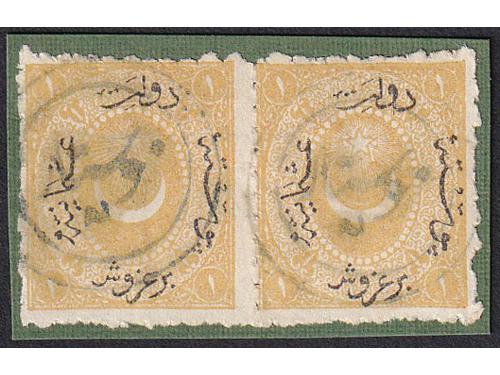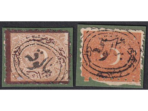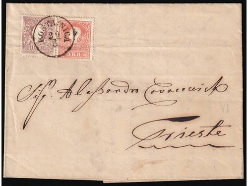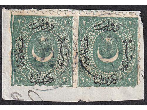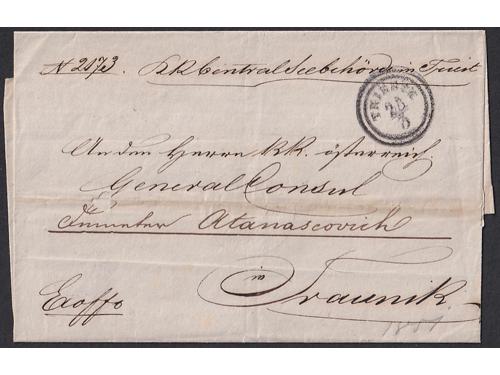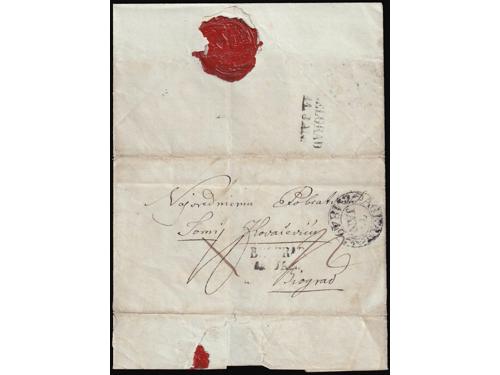 Aukcija br. 74 - Filatelija i razglednice Bosna i Hercegovina ☉ 540 - Dvije Turske marke sa žigom Banja Luka. 25 EUR ☉ 541 - Turska marka sa žigom Brod na Savi. 18 EUR ☉ 542 - Turska marka Michel br. 15 vodoravni par sa žigom MOSTAR. 20 EUR ▲ 543 - Turska marka, Michel br 14, vodoravni par na isječku sa žigom MOSTAR. 20 EUR ✉ 544 - Pismo upućeno iz Sarajeva u Istanbul 1859 godine. 60 EUR ✉ 545 - Pismo s kompletnim sadržajem pisano 05.05 1859. u Banja Luci u Bosni, tada dijelu Otomanskog carstva 500 EUR ✉ 546 - Pismo s kompletnim sadržajem pisano u Ivanjskoj kod Bosanske Krupe te upućeno iz Zagreba 07.01. 1849 u Beograd. 50 EUR ✉ 547 - Pismo malog formata s kompletnim sadržajem pisano u Bosanskom Šamcu 28.10. 1872. 60 EUR ✉ 548 - Omot pisma upućenog iz Trsta 23.03. 1851. preko Karlovca 27.03. Nove Gradiške 29.03. i Broda 30.03. u Travnik. 60 EUR ☉ 549 - Michel br. 5 zupčanje 9 ¼. Poznate samo žigosane. 55 EUR ✉ 550 - Pismo upućeno iz Tešnja u Sarajevo 06.01. 1882 25 EUR ✉ 551 - Pismo upućeno iz Sarajeva u Mostar 25.06. 1884. 20 EUR 1234→