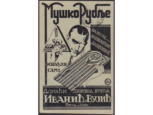 Aukcija br. 74 - Filatelija i razglednice Hrvatska - Brodsko-posavska županija #/A 2005 - Cernik oko 1920. 14 EUR #/A-B 2006 - Nova Gradiška. Trg Franje Josipa I. 14 EUR #/A-B 2007 - Podvinj 1901. 28 EUR O/A 2008 - Pozdrav iz Sl. Broda oko 1910. 18 EUR O/A-B 2009 - Pozdrav iz Broda n. Savi oko 1910. 16 EUR #/A-B 2010 - Promidžbena karta: 'Muško rublje, Ivanić i Vulić' 1925. 14 EUR