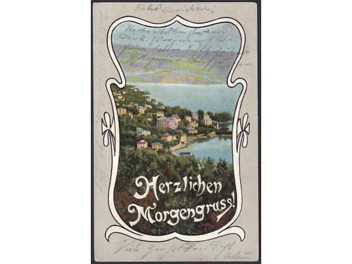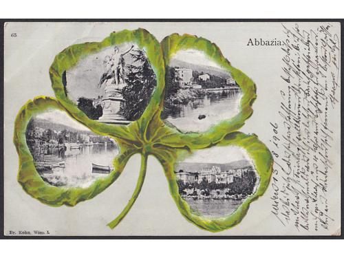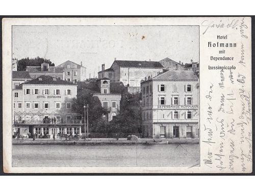Aukcija br. 74 - Filatelija i razglednice Hrvatska - Primorsko-goranska županija #/A 2112 - Klana 1940. 14 EUR #/A 2113 - Pozdrav iz Liča 1911. 35 EUR #/A-B 2114 - Mali Lošinj 1907. 18 EUR #/A-B 2115 - Mali Lošinj oko 1910. Hotel Hofmann. 18 EUR #/A 2116 - Mali Lošinj oko 1910. 18 EUR O/A 2117 - Mali Lošinj oko 1910. 16 EUR O/A 2118 - Mali Lošinj 1910. 16 EUR #/A 2119 - Pozdrav iz Mrkoplja 1911. 16 EUR #/A-B 2120 - Opatija oko 1904. 55 EUR #/A-B 2121 - Opatija oko 1904. 25 EUR #/A 2122 - Opatija?, oko 1920. 16 EUR #/B-C 2123 - Rijeka 1896. 18 EUR ←1234→