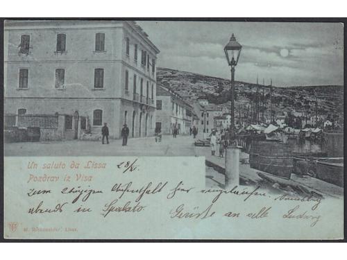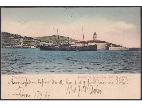 Aukcija br. 74 - Filatelija i razglednice Hrvatska - Splitsko-dalmatinska županija #/A 2155 - Split 1907. 50 EUR O/A-B 2156 - Split oko 1910. 16 EUR O/A 2157 - Split oko 1910. 16 EUR #/A-B 2158 - Starigrad 1899. 55 EUR #/A 2159 - Supetar 1932. 14 EUR #/A 2160 - Trogir 1899. 20 EUR #/B 2161 - Trogir 1899. 20 EUR #/A 2162 - Pozdrav iz Visa 1901. 30 EUR #/A 2163 - Pozdrav iz Visa 1904. 65 EUR O/A-B 2164 - Pozdrav iz Visa oko 1904. 40 EUR #/A-B 2165 - Vis 1910. 30 EUR #/A-B 2166 - Pozdrav iz Visa 1913. 40 EUR ←123→