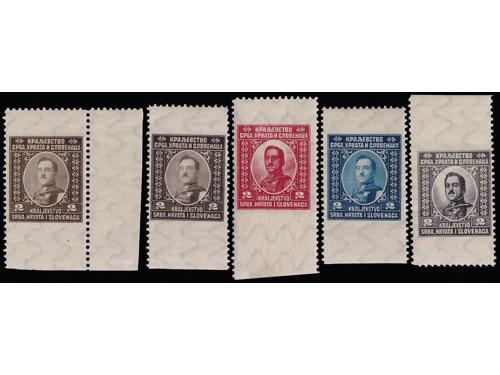 ** 806 - 5 probnih otisaka u raznim bojama i nijansama neprihvaćenog idejnog rješenja za franko-niz Kraljevine SHS