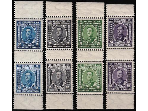 ** 805 - 4 probna otisaka u okomitim parovima i raznim bojama neprihvaćenog idejnog rješenja za franko-niz Kraljevine SHS.