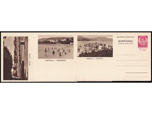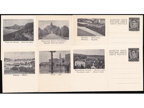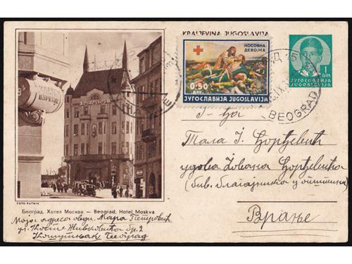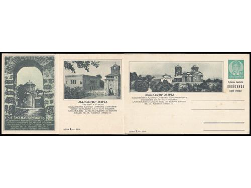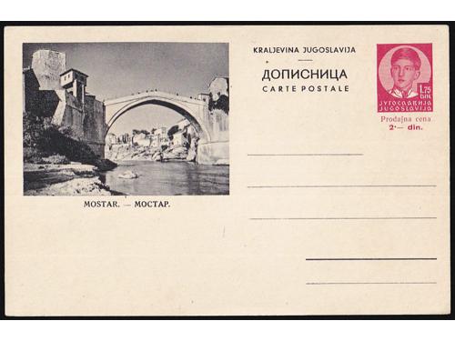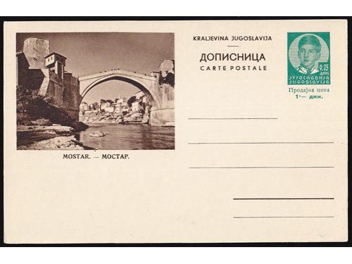 Aukcija br. 74 - Filatelija i razglednice Kraljevina Jugoslavija ✉ 859 - Slikovna dopisnica 0,75 din (Aleksandar) s prikazom starog mosta u Mostaru. 12 EUR ✉ 860 - Šest slikovnih dopisnica Aleksandar 75 para 60 EUR ✉ 861 - Šest slikovnih dopisnica Aleksandar 75 para 55 EUR ✉ 862 - Šest slikovnih dopisnica Aleksandar 75 para 60 EUR ✉ 863 - Lot četiri dopisnice za inozemstvo, sve razne od kojih je jedna slikovna. 30 EUR ✉ 864 - Slikovna dopisnica 1,75 din (prodajna 2 din.) s prikazom starog mosta u Mostaru. 12 EUR ✉ 865 - Tri slikovne dopisnice 2 din. za inozemstvo (Cetinje, Korčula i Rab) u odličnoj kvaliteti. 45 EUR ✉ 866 - Tri slikovne dopisnice 2 din. za inozemstvo (Crikvenica, Korčula i Selce) u odličnoj kvaliteti. 45 EUR ✉ 867 - Dvije slikovne dopisnice 1,5 i 2 din na temu Ćirila i Metoda. 35 EUR ✉ 868 - Slikovna dopisnica 0,75 din (prodajna 1 din.) s prikazom starog mosta u Mostaru. 10 EUR ✉ 869 - Slikovna dopisnica dofrankirana doplatnom markom Crvenog Križa i upućena iz Beograda u Vranje 18.09. 1938. 10 EUR ✉ 870 - Komplet tri slikovne dopisnice s prikazom manastira Žiča. 14 EUR ←123456789→