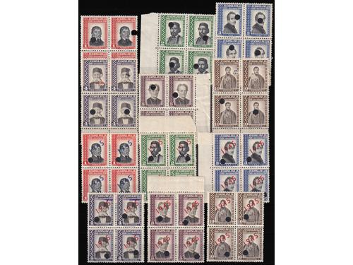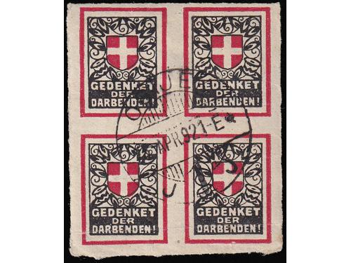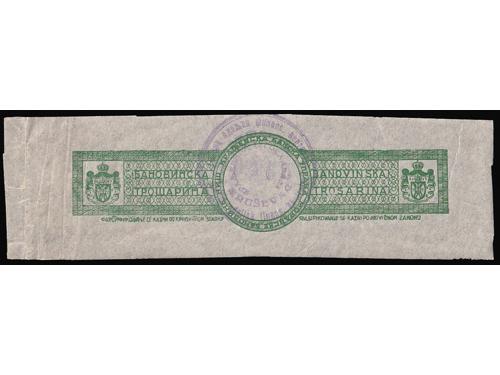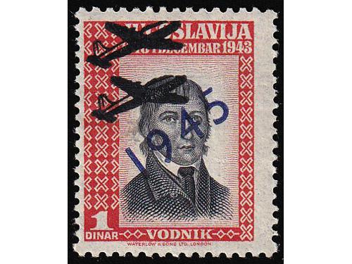 Aukcija br. 74 - Filatelija i razglednice Kraljevina Jugoslavija ** 895 - London izdanje u emigraciji, dvostruki otisak siluete zrakoplova na marku s prikazom Valentina Vodnika. 60 EUR ** 896 - Izdanje u emigraciji, London. Faza tiska okvira marke, nezupčani četverci na gumiranom papiru 190 EUR ** 897 - Izdanje u emigraciji, London. Niz od 6 nezupčanih četveraca na gumiranom papiru. 220 EUR ** 898 - Izdanje u emigraciji, London. Niz od 6 četveraca na gumiranom papiru i niz od 6 četveraca 40 EUR 899 - Dva lista iz školskog bloka koju su pohađali kraljevići Tomislav i Andrej i na kojima su naljepljene marke s njihovim likom (Michel br. 330-333). 120 EUR 900 - Lot vinjeta Jugoslavensko područje. 40 EUR 901 - Komplet: koverta, letak, ček i arak vinjeta za pomoć Hrvatske akademske menze sveučilišta u Zagrebu. 25 EUR ☉ 902 - Nezupčani četverac vinjeta Gedenket der Darbenden (Sjeti se siromaha) sa žigom Osijeka 25.04. 1921. 18 EUR ** 903 - Biljeg Banovniska trošarina sa žigom grada Kruševca. 14 EUR ←456789