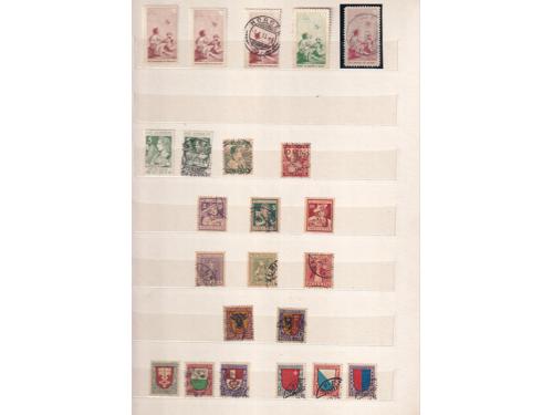 Aukcija br. 74 - Filatelija i razglednice Ostalo 1388 - Ex Jugoslavenska zbirka, kraljevina Jugoslavija, NDH, Talijanska i njemačka okupacija Slovenije, Crna Gora, provizoriji 1945, STT VUJA 300 EUR 1389 - Kraljevina Jugoslavija, zbirka preko 700 maraka ili isječaka 140 EUR 1390 - Jugoslavija, lot zanimljivog sastava: esperanto, željeznički blokovi (falc), I umjetnost u četvercima 260 EUR 1391 - Jugoslavija Zbirka FDC-a, neki putovali, sve iz razdoblja 1950-1965. 45 EUR 1392 - Jugoslavija, dobra zbirka na falcu. 90 EUR 1393 - Temišvar, odlična zbirka maraka i poštanske povijesti popraćena literaturom. 1200 EUR 1394 - Lager knjiga ex Jugoslavenskog područja. 150 EUR 1395 - Dva albuma s markama kraljevine Jugoslavije i raznim markama Europskih zemalja te nekoliko pisama. 20 EUR ✉ 1396 - Zbirka pisama Latvije, Luksemburga, Nizozemske, Norveške, Portugala i Rumunjske. 65 EUR 1397 - Gotovo kompletna zbirka Trst Zona A u Marini albumu. 280 EUR 1398 - Švicarska, zbirka preko 1500 Michel € kataloške vrijednosti. 140 EUR 1399 - Slovačka 1941-1945, zbirka čistih maraka razrađena po vodoznacima 90 EUR ←678910111213→