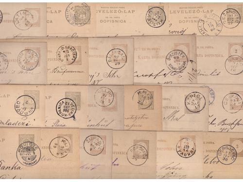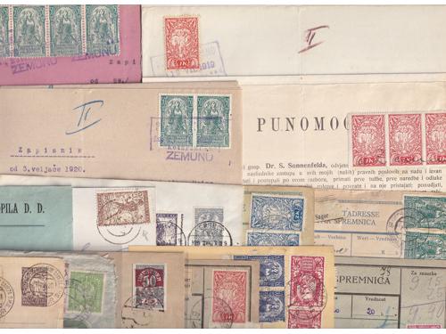 Aukcija br. 74 - Filatelija i razglednice Ostalo ✉ 1304 - Slovenija, mali ali dobar lot 15 pisama, cjelina, paketnih karata i dokumenata frankiranih markama iz niza verigari. 60 EUR ✉ 1305 - Kraljevina SHS lot 19 cjelina. Zanimljive frankature i cenzurni žigovi. 45 EUR ✉ 1306 - Slovenija, zanimljiv lot cjelina s žigovima raznih mjesta. 190 EUR ✉ 1307 - Slovenija, lot 35 pisama, dopisnica i drugih poštanskih dokumenata. 85 EUR ✉ 1308 - Slovenija, lot od 15 vojnopoštanskih dopisnica slovenskog časnika upućenih na razne vojne pošte uglavnom u Albaniji. 90 EUR ✉ 1309 - Lot 15 pisama uglavnom upućenih iz Trsta, sve razdoblje između 2 rata. 30 EUR ✉ 1310 - Zbirka mađarskih dopisnica (21 kom) sve s lijepim žigovima mjesta u Hrvatskoj. 45 EUR ✉ 1311 - Slovenija, lot pisama sve do 1918. 40 EUR ✉ 1312 - Talijanska okupacija Slovenije, lot 15 raznih poštanskih dokumenata sa zanimljivim žigovima i u dobroj kvaliteti. 40 EUR ✉ 1313 - Srbija, lot pisama, dopisnica i razgeldnica sve u vezi sa Srbijom. 50 EUR ✉ 1314 - Srbija i Crna Gora dobar lot pisama i dopisnica, preko 40 kom. 70 EUR ✉ 1315 - Srbija i Crna Gora, lot dopisnica i pisama. 60 EUR ←123456789→