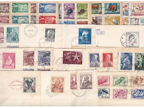 Aukcija br. 74 - Filatelija i razglednice Ostalo ✉ 1328 - STT VUJA zbirka FDC-a 16 raznih izdanja. 100 EUR ✉ 1329 - Jugoslavija, lot oko 70 cjelina iz svih razdoblja od 1945 do 1990 čiste i putovale. 30 EUR ✉ 1330 - Albanija, lot 6 pisama i dopisnica u dobroj kvaliteti. 25 EUR ✉ 1331 - Mali lot dobrih pisama. 25 EUR ✉ 1332 - Zbirka preko 60 pisama, dopisnica i razglednica sve s raznim cenzurnim žigovima Hrvatska 1914-1918. 150 EUR 1333 - Mornari SHS Hrvatska, odličan lot s puno pogrešaka zupčanja, nezupčanima, dvostrukim otiscima 120 EUR 1334 - SHS Hrvatska i SHS Bosna i Hercegovina, zbirka na albumskim listovima. 80 EUR 1335 - SHS Hrvatska, zanimljiv lot maraka. 50 EUR 1336 - Bosna i Hercegovina i Baranja, zbirka na albumskim listovima 75 EUR 1337 - Bosna i Hercegovina, vrlo zanimljiv i nepregledan lot po zupčanjima, bojama, žigovima, perforacijama itd. 70 EUR 1338 - Bosna i Hercegovina i SHS Bosna i Hercegovina. Dobar lot maraka, 280 EUR 1339 - Bosna i Hercegovina, lijepa stara zbirka na albumskim listovima. 120 EUR ←123456789→