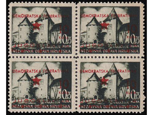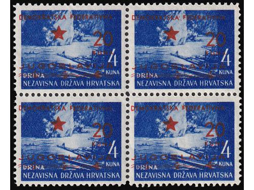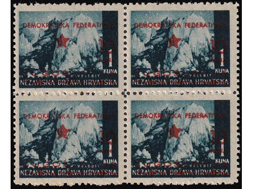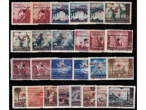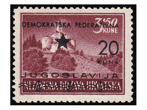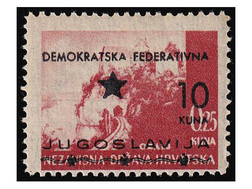Aukcija br. 74 - Filatelija i razglednice Partizani i provizorna izdanja ** 904 - Provizrno izdanje za Split. Kompletna serija u četvercima. 90 EUR ** 905 - Provizorno izdanje za Split, komplet svi papiri, 320 EUR ** 906 - Provizorno izdanje za Split. 20/4, 20/6 i 30 na 7 kn sve u T/B. 100 EUR ** 907 - Provizorno izdanje za Split. Marka 20 na 6 kn T/B. 40 EUR ** 908 - Provizorno izdanje za Split, vodoravni par 20/6 na papiru za offsetni tisak 50 EUR ** 909 - Provizorno izdanje je za Split 10/0,25 kn na rijetkom poroznom papiru. 40 EUR ** 910 - Provizorno izdanje za Split 20/3,50 kn na rijeđem papiru za offsetni tisak. 20 EUR ** 911 - Provizorno izdanje za Split. Četverac 10/0,75 kn. na poroznom papiru. 20 EUR ** 912 - Provizorno izdanje za Split. Četverac 10/1 kn na poroznom papiru. 10 EUR ** 913 - Provizorno izdanje za Split. Četverac 20/3 kn na poroznom papiru. 20 EUR ** 914 - Provizorno izdanje za Split. Četverac 20/4 kn na dubokotisnom papiru. 30 EUR ** 915 - Provizorno izdanje za Split, kompletna serija i još marka 10/0,25 na poroznom papiru 30 EUR 1234→