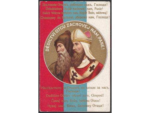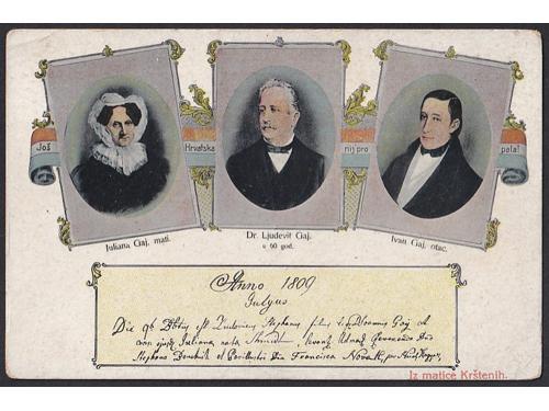 Aukcija br. 74 - Filatelija i razglednice Razglednice - Ostalo O/A-B 2395 - Prelazak vojske preko pontonskog mosta oko 1915. 14 EUR #/A-B 2396 - Živjela Hrvatska oko 1904. 35 EUR O/A-B 2397 - Svoj k'svome oko 1904. 110 EUR O/A-B 2398 - Povodom 100 godina rođenja dr. Lj. Gaja oko 1909. 35 EUR #/A-B 2399 - Sačuvaj nam baštinu oca našeg, Gospodina 1910. 16 EUR O/B 2400 - Aleksandar I., 1930. 25 EUR #/A-B 2401 - Hrvatska seljačka svadba 1902. 20 EUR O/A-B 2402 - Narodne nošnje iz Vrlike oko 1904. 16 EUR O/A-B 2403 - Dalmatinska narodna nošnja oko 1910. 14 EUR ←12
