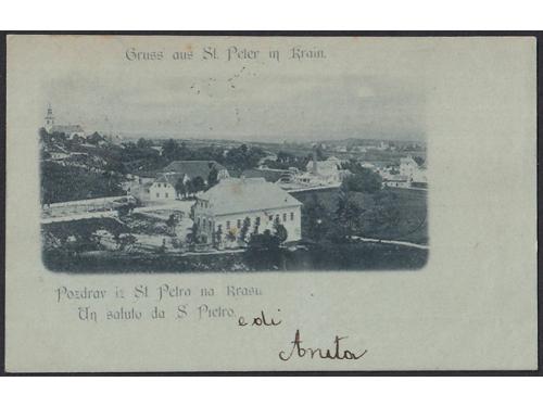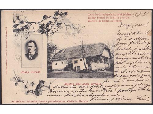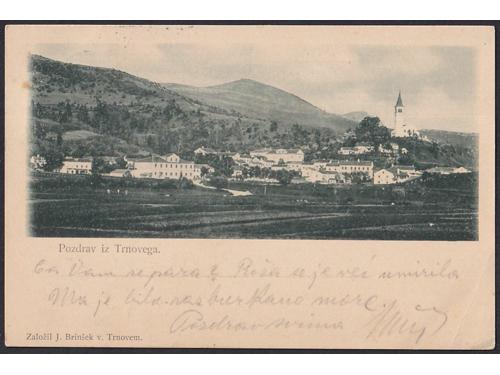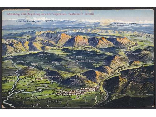 Aukcija br. 74 - Filatelija i razglednice Razglednice - Slovenija #/A-B 2320 - Slovenske Konjice 1902. 35 EUR #/A 2321 - Snežnik 1928. 16 EUR #/A 2322 - Svetišče Sv. Gore pri Gorici 1904. 16 EUR #/A 2323 - St. Peter in Krain 1898. 16 EUR #/A-B 2324 - Pozdrav iz Šmarne gore 1919. 16 EUR #/A-B 2325 - Pozdrav iz Trnovega 1901. 30 EUR O/A 2326 - Tržič na Gorenjskem oko 1915. 20 EUR #/A-B 2327 - Pozdrav iz Žužemberka 1920. 18 EUR #/A 2328 - Josip Jurčić 1904., rodna kuća. 30 EUR #/A 2329 - Karta Slovenije 1918. 25 EUR #/A-B 2330 - Panorama Maribora iz ptičje perspektive 1914. 14 EUR #/A-B 2331 - Postojna i okolica iz ptičje perspektive 1915. 14 EUR ←1234