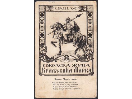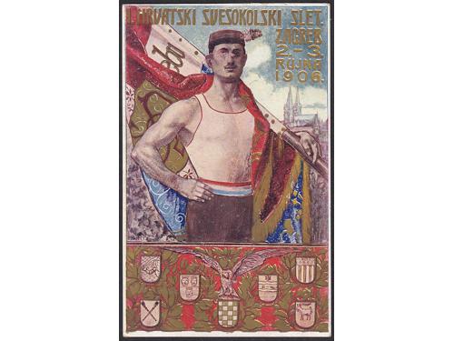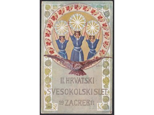 Aukcija br. 74 - Filatelija i razglednice Razglednice - Sokoli #/A 2378 - I. Hrvatski svesokolski slet Zagreb 1906. 30 EUR O/A-B 2379 - II. Hrvatski svesokolski slet, Zagreb 1911. 18 EUR O/A-B 2380 - 7. Slet Splitske sokolske župe u Splitu 1926. 25 EUR #/A-B 2381 - Starešina Saveza Sokola Kraljevine Jugoslavije Kralj Petar I. 1929. 16 EUR #/A-B 2382 - Sokolska župa 1928. 14 EUR
