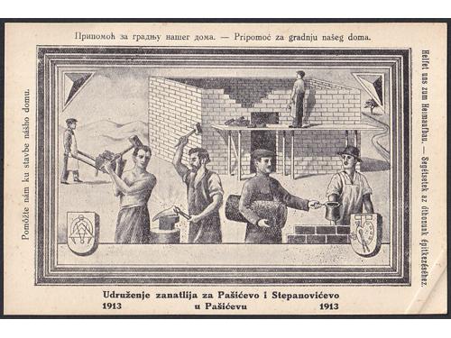 Aukcija br. 74 - Filatelija i razglednice Razglednice - Srbija #/A-B 2368 - Reklama, Novi Bečej 1903. 16 EUR #/B 2369 - Promidžbena karta WWI 1915. 16 EUR O/A-B 2370 - Promidžbena karta: 'Udruženje zanatlija za Pašićevo i Stepanovićevo u Pašićevu 1913. 12 EUR ←1234