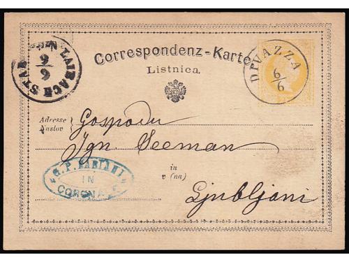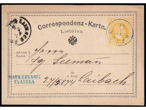 658 - Dvojezična dopisnica upućena iz Divače u Ljubljanu 06.06. 1874.