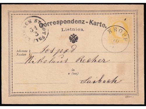 656 - Dvojezična dopisnica upućena iz Kroppe u Ljubljanu 30.03. 1875.