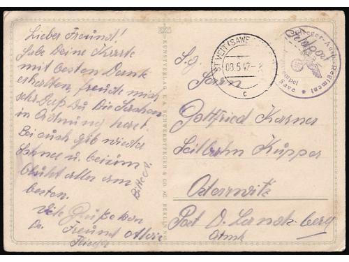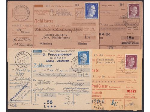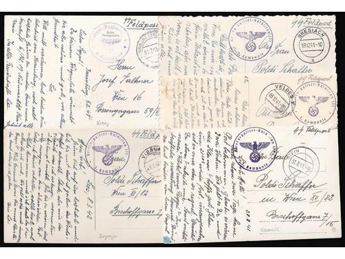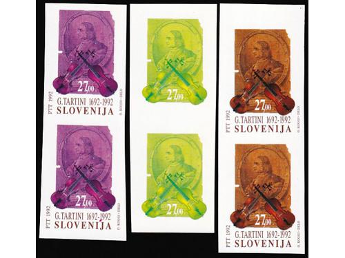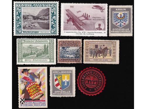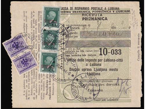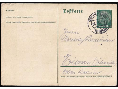 Aukcija br. 74 - Filatelija i razglednice Slovenija ✉ 748 - Njemačka dopisnica upućena iz REICHENBURGA (Brestanica) 06.07. 1941. 14 EUR ✉ 749 - Lot četiri razne novčane doznačnice poništene žigovima Slovenkih pošta pod Njemačkom okupacijom 80 EUR ✉ 750 - Lot 5 razglednica SS vojne pošte upućenih iz Begunja, Brezja, Bleda, Kamnika i Kranja u Beč. 70 EUR ✉ 751 - Razglednica upućena iz Sv. Vida na Savi u Austriju 08.05. 1942. 20 EUR ✉ 752 - Priznanica za novčanu uplatu mješovito frankirana 25 EUR (*) 753 - Tartini okomite faze tiska i nezupčani okomiti niz. 50 EUR ** 754 - Michel br. 312, arčić u odličnoj kvaliteti, 60 EUR ** 755 - Prijedlog za prve Slovenke marke 1990, kompletan arak, 50 EUR ** 756 - Četiri vinjete povodom Ljubljanskog sajma 1933 godine. 40 EUR 757 - Lot vinjeta sa Slovenskom tematikom. 25 EUR ←456789