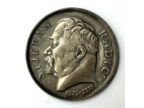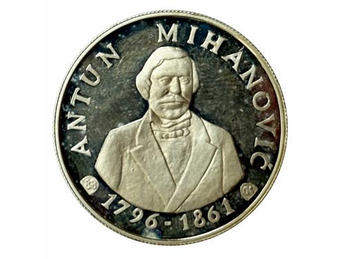 Aukcija br. 75 - Numizmatika, militarija 3025 - Tuđinin srebrnjak, Kardinal Stepinac, jednostrana inačica, Ag - 80,2 g, 63 mm, emigrantsko izdanje Zlatka Tudjine 1960/70., UNC, rijetko 120 EUR 3026 - BOHUTINSKI, Emil, medalja Stjepan Radić, 1971, Ag - 11 g, 31 mm 30 EUR 3027 - HRVATSKA, medalja "Petrova Gora", Ag (0.900) - 5.1 g, 23 mm 8 EUR 3028 - FRANJO TUĐMAN, medalja, 1990, prva medalja s likom predsjednika F. Tuđmana, Ag - 15 g, 32 mm, originalna kutija 25 EUR 3029 - VUKOVAR - Vučedolska golubica, medalja, autor D. Mataušić, 1992, Ag (0.950) - 13 g, 31 mm 40 EUR 3030 - Privredna banka ZAGREB, medalja 40 godišnjica 2002, Ag - 24.12 g, 37 mm 40 EUR 3031 - HRVATSKA, medalja "Antun Mihanović - NSB", Ag (0.925) - 8 g, 28 mm 16 EUR 3032 - CRNA GORA, 10 perpera 1910, Au - 3,39 g, 19 mm, aUNC-UNC 950 EUR 3033 - JUGOSLAVIJA, medalja "Njegoš", Ag (0.900) - 8,35 g, 27 mm 12 EUR 3034 - Jugoslavija, Kraljevina, 20 dinara 1925, Au - 6,22 g UNC (kopija iz vremena - vidi Mandić 1995 strana 28) 550 EUR 3035 - Jugoslavija, Kraljevina, 1 dukat 1933, Au - 3,49 g UNC 900 EUR 3036 - Jugoslavija, Kraljevina, 1 dukat 1932, Au - 3,49 g UNC 600 EUR ←123456789→