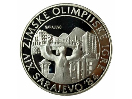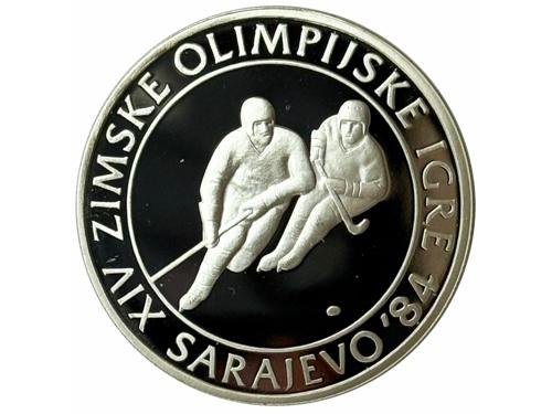 Aukcija br. 75 - Numizmatika, militarija Kovani novac - Socijalistička Jugoslavija 3039 - JUGOSLAVIJA, planšeta za 10 para 1965/81, AE - 3 g 10 EUR 3040 - JUGOSLAVIJA, planšeta za 50 para 1965/81, AE - 6 g 10 EUR 3041 - JUGOSLAVIJA, greška u kovanju, 20 para 1981. na pločici od 1 dinara 1973-81., pravilna težina od 3,8 g 100 EUR 3042 - JUGOSLAVIJA, greška u kovanju, 50 para 1984, izuzetno je zanimljivo da je pravilna težina od 2,8 g 60 EUR 3043 - JUGOSLAVIJA, greška u kovanju, 25 para 1982/83 samo naličje 20 EUR 3044 - JUGOSLAVIJA, greška u kovanju, 2 dinara 1985 na širokoj pločici od 28 mm (treba biti 22 mm !!!), nazubljen rub, pravilna težina od 4,3 g 150 EUR 3045 - JUGOSLAVIJA, greška u kovanju, 100 dinara 1985 na širokoj pločici od 36 mm (treba biti 29 mm !!!), nazubljen rub, pravilna težina od 8,7 g 150 EUR 3046 - JUGOSLAVIJA, 100 dinara 1982, SARAJEVO, olimpijada 1984 Ag (0.925) - 13 g, 30 mm 20 EUR 3047 - JUGOSLAVIJA, 250 dinara 1982, SARAJEVO, olimpijada 1984 Ag (0.925) - 17 g, 34 mm 25 EUR 3048 - JUGOSLAVIJA, lot (3) medalje "Tito-Jajce", Ag (0.925) - 5, 3, 2 g, ukupno 10 g, 24, 20, 16 mm 70 EUR 3049 - JUGOSLAVIJA, medalja "Kozara", Ag (0.900) - 11 g, 30 mm 20 EUR 3050 - JUGOSLAVIJA, medalja "30 godina pobjede nad fašizmom", Ag (0.925) - 5 g, 24 mm 55 EUR 12→