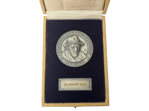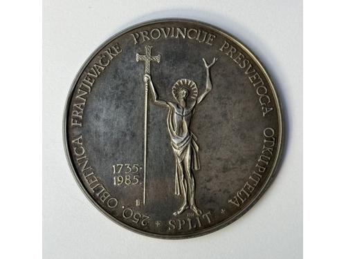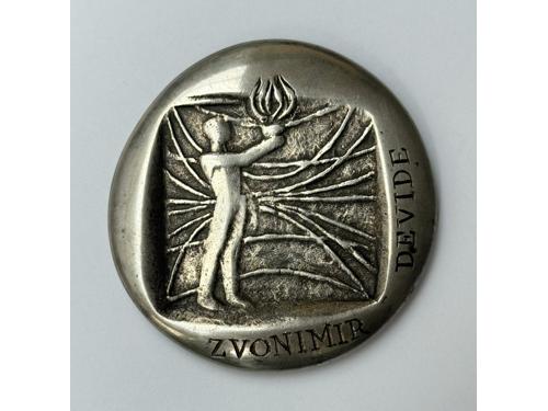 Aukcija br. 75 - Numizmatika, militarija Medalje - Hrvatska 3171 - BRKIĆ, Zlatko, medalja FERDINAND KULMER 1977, u originalnoj kutiji AE - 690 g, 117 mm 100 EUR 3172 - BELOBRAJDIĆ, Ivan, JURAJ JULIJE KLOVIĆ, medalja, 400 godišnjica smrti, 1578-1978, Zagreb-Grižane, AE - 383,6 g, 76 mm, XF 30 EUR 3173 - ZIMA, Željko, plaketa Vladimir Nazor, u originalnoj kutiji TB - 70 mm 12 EUR 3174 - SIKIRICA, Stipe, medalja SPLIT, 250 godina 1735 - 1985 franjevačke provincije, Ag (0.950) - 47 g, 56 mm 220 EUR 3175 - RUŽIĆ, Branko, (1919 - 1997) plaketa GRAND PRIX Slavku Kopaču 1988, vjerojatno unikat, AE - 865 g, 140 mm 120 EUR 3176 - Nagrada za životno djelo, medalja Zvonimir Devide, Ag? - 120 g, 60 mm, nepoznati autor 100 EUR 3177 - JANEŠ, Želimir, 1995., medalja, I numizmatički kongres u Opatiji, Ag - 33,6 g, 40 mm 40 EUR 3178 - Divković, Stjepan, medalja J.Bozanić, 1997, TB - 94,12 g, 63 mm 20 EUR 3179 - ZAGREB-Sljeme, medalja kapelica majke božje sljemenske, 1934, Al - 25 mm 12 EUR 3180 - Tuđinini srebrnjak, Kralj Tomislav, Ag (1000) - 80 g, 120 EUR 3181 - PLACHT, Richard, medalja Franjo Josip posjeta Bosni i Hercegovini 1910, AE, 75 mm 70 EUR 3182 - Plaketa koja predstavlja žrtvovanje Herkulu (kasnije Silvanusu) - prikaz je originalno s Konstantinovog slavoluka u Rimu, AE 200x265 mm, talijanski rad, 18. stoljeće vjerojatno prema 150 EUR ←1234→