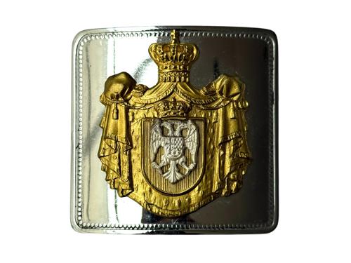Aukcija br. 75 - Numizmatika, militarija Militarija 3291 - Kraljevina Jugoslavija, kokarda s nepoznatom kraticom "DB", vjerojatno se radi o nekom odredu vojske kraljevine koji je imao pravo nošenja svog posebnog znaka. 300 EUR 3292 - Kraljevina Jugoslavija, oficirska kopča za remen 100 EUR 3293 - KRALJEVINA JUGOSLAVIJA, gumbi za vojni ogrtač (pelerinu), izvrsna kvaliteta, proizvođač: BSW (Bruder Schneider Wien) 100 EUR 3294 - Kraljevina Jugoslavija, skautska oznaka "BUDI SPREMAN" za oficire skauta, redni broj 355, rijetko, 38x51 mm 400 EUR 3295 - Kraljevina Jugoslavija, skautska oznaka 31x21 mm, rijetko 60 EUR 3296 - Kraljevina Jugoslavija, skautska oznaka 15x20 mm, rijetko 30 EUR 3297 - Jugoslavija, socijalistička, medalja za predvojničku obuku, 36 mm 55 EUR 3298 - Socijalistička Jugoslavija, orden rada I reda (s crvenom zastavom) s diplomom u luksuznom tuljcu i uvjerenje o dodjeli. 190 EUR 3299 - Jugoslavija, socijalistička, minijatura ordena za vojne zasluge 3 reda, prvi tip - dvostrani, Ag 40 EUR 3300 - Jugoslavija, socijalistička, partizanska spomenica 1941 minijatura, punce: Ag 900, IKOM, pijetao, XF 20 EUR 3301 - JUGOSLAVIJA, socijalistička, značka, "Streljački savez Jugoslavije", IKOM - Zagreb, rijetko, 20x22 mm 14 EUR 3302 - Socijalistička Jugoslavija, album značaka JNA, ukupno 41 značka. 50 EUR ←123456→