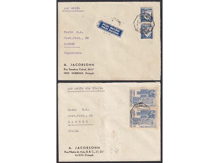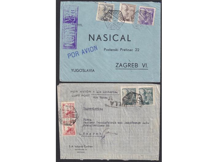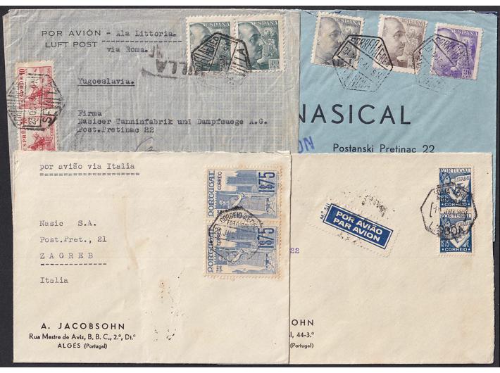 Opis: Četiri pisma upućena zrakoplovom iz Španjolske i Portugala. Sva cenzurirana i s dolaznim žigovima.