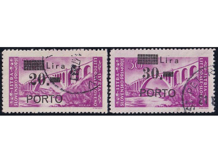 Opis: Četvrto porto izdanje, pretisak 20/30 i 30/30 lira, pogreška pretiska trećeg polja, okomiti razmak između pretisnutog broja i pretisnute mreže je 1 umjesto 2 mm.