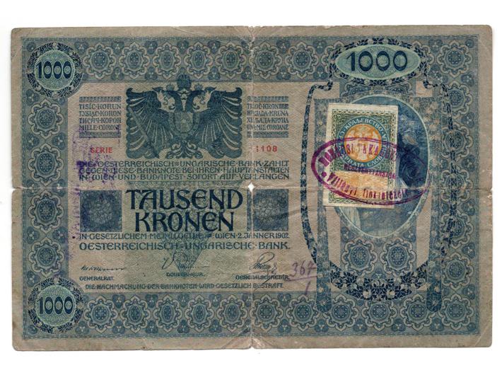 Opis: 1000 kruna 1902, MOHACS - mađarski žig