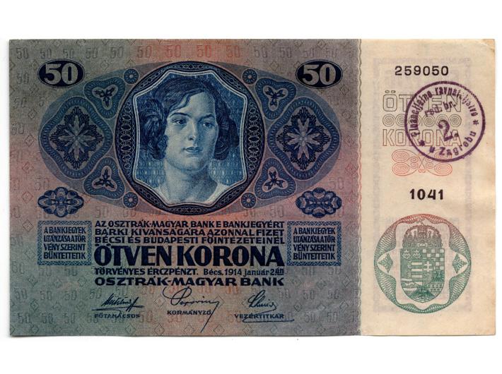 Opis: 50 kruna, U ZAGREBU FINANCIJALNO RAVNATELJSTVO RED BR 2