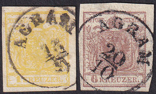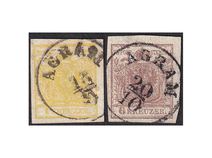 Opis: Austrija, Michel br. 1 i 4, dobra kvaliteta, lijepi rubovi, žig AGRAM.