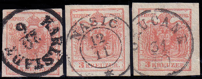 • Austrija Michel br. 3 sa žigovima KARLSTADT, NASIC i OKUCANI.