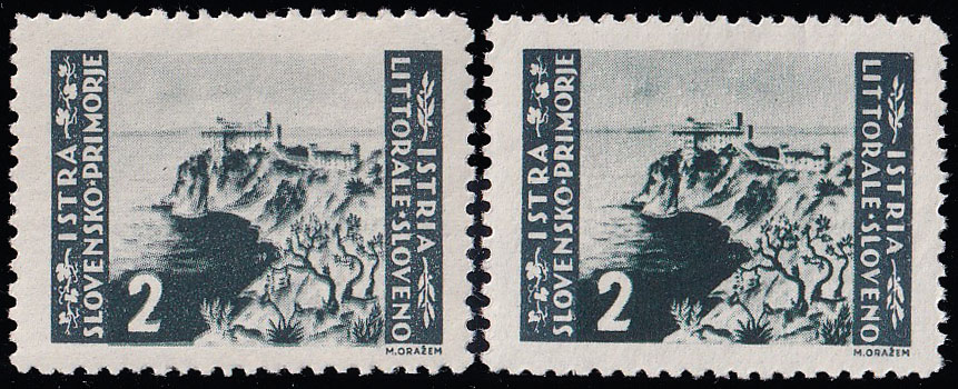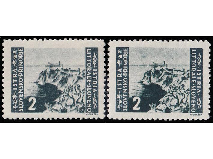 - Beogradsko izdanje, marka 2 lire s dvostrukim otiskom centralne slike