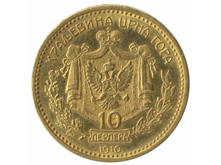 Opis: CRNA GORA, 10 perpera 1910, Au - 3,39 g, 19 mm, aUNC-UNC