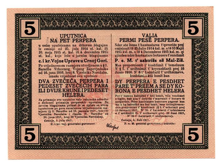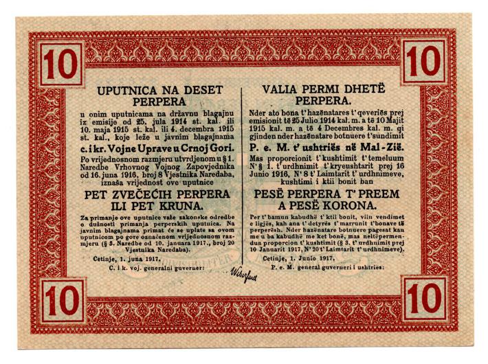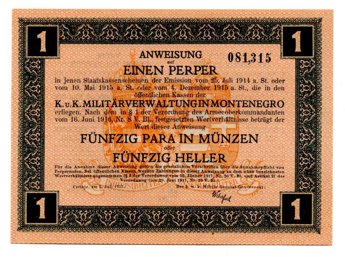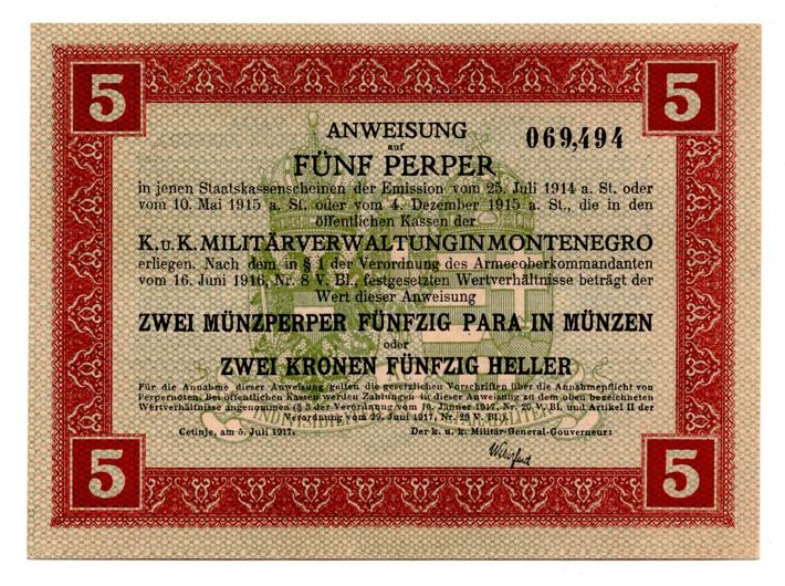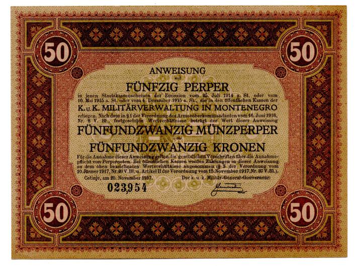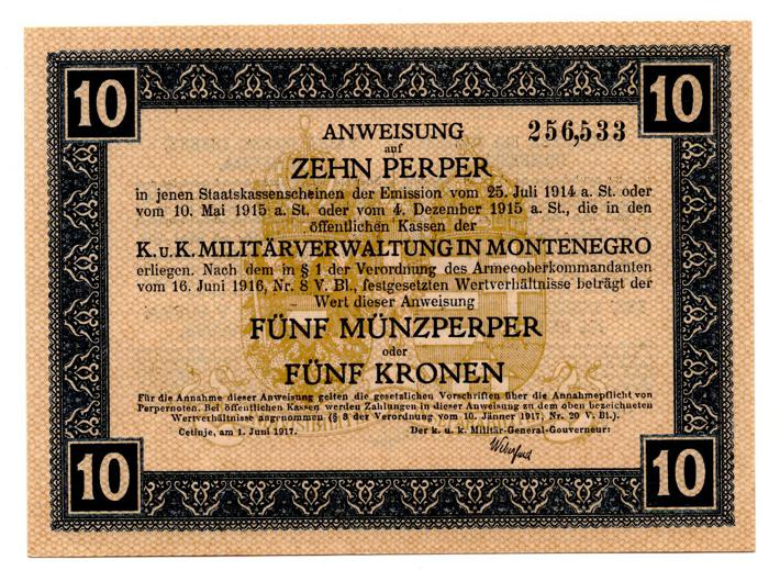 - CRNA GORA, lot(7) - 1, 2, 5, 10, 20, 50, 100 perpera 1917., austrijska okupacija Crne Gore, UNC! kompletan set izuzetna rijetkost u ovoj kvaliteti