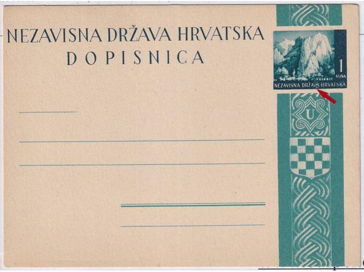 Opis: Dopisnica 1 kn. s pogreškom tiska, nedostaje VA u DRŽAVA. Odlična kvaliteta.