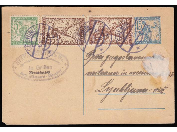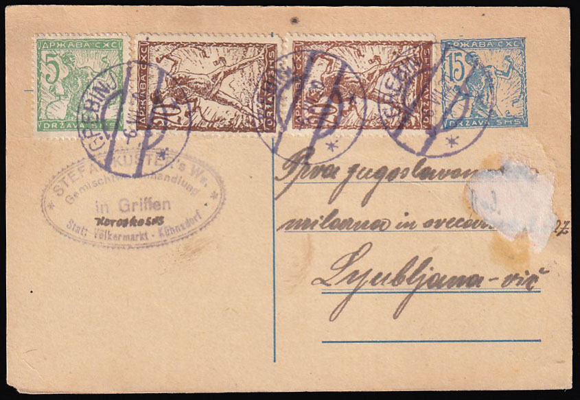 - Dopisnica dofrankirana i upućena iz Grebinja (Koruška) u Ljubljanu 06.07. 1920.