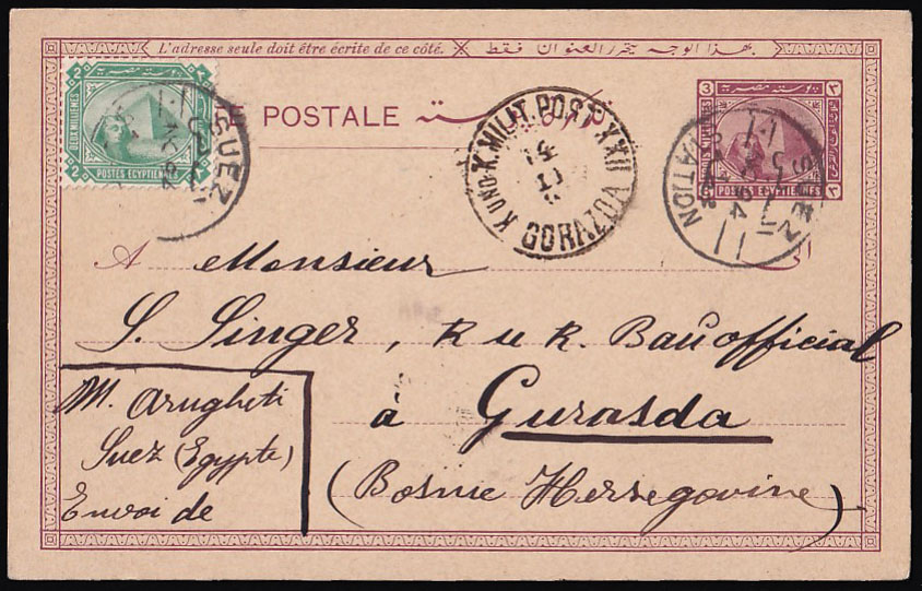 - Dopisnica upućena iz Egipta (Suez) u Goražde 05.11. 1894.