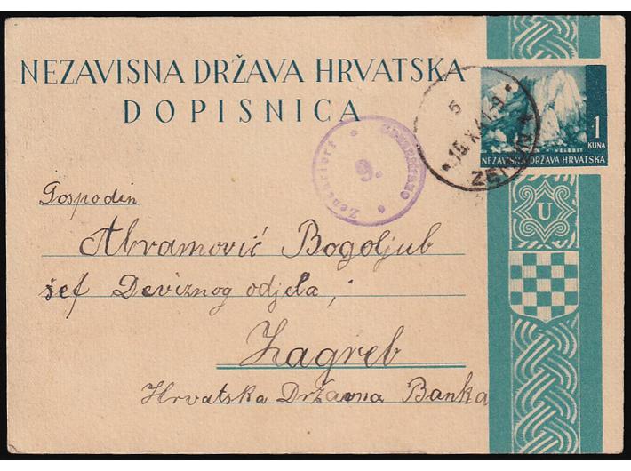 Dopisnica upućena iz Zemuna u Zagreb 15.10. 1941.
